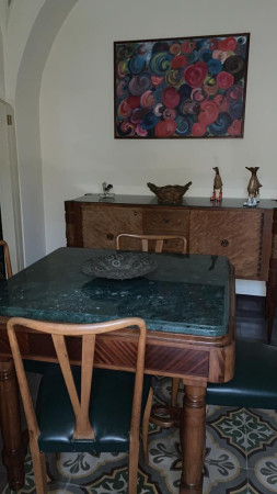 Al piano rialzato di un edificio d’epoca primi ‘900 in perfette condizioni generali,  corredato da uno spazio esterno terrazzato, questo appartamento con  proprio ingresso indipendente, è composto da un disimpegno d’ingresso, un ampio soggiorno con cucina a vista ed annessa zona pranzo, una camera da letto matrimoniale, uno studio, un bagno ed un secondo servizio/lavanderia. Climatizzato caldo/freddo, questo originale trilocale arredato con mobili originali, ha affacci su uno spazio terrazzato vivibile e  conserva intatti soffitti decorati e pavimentazioni d’epoca.